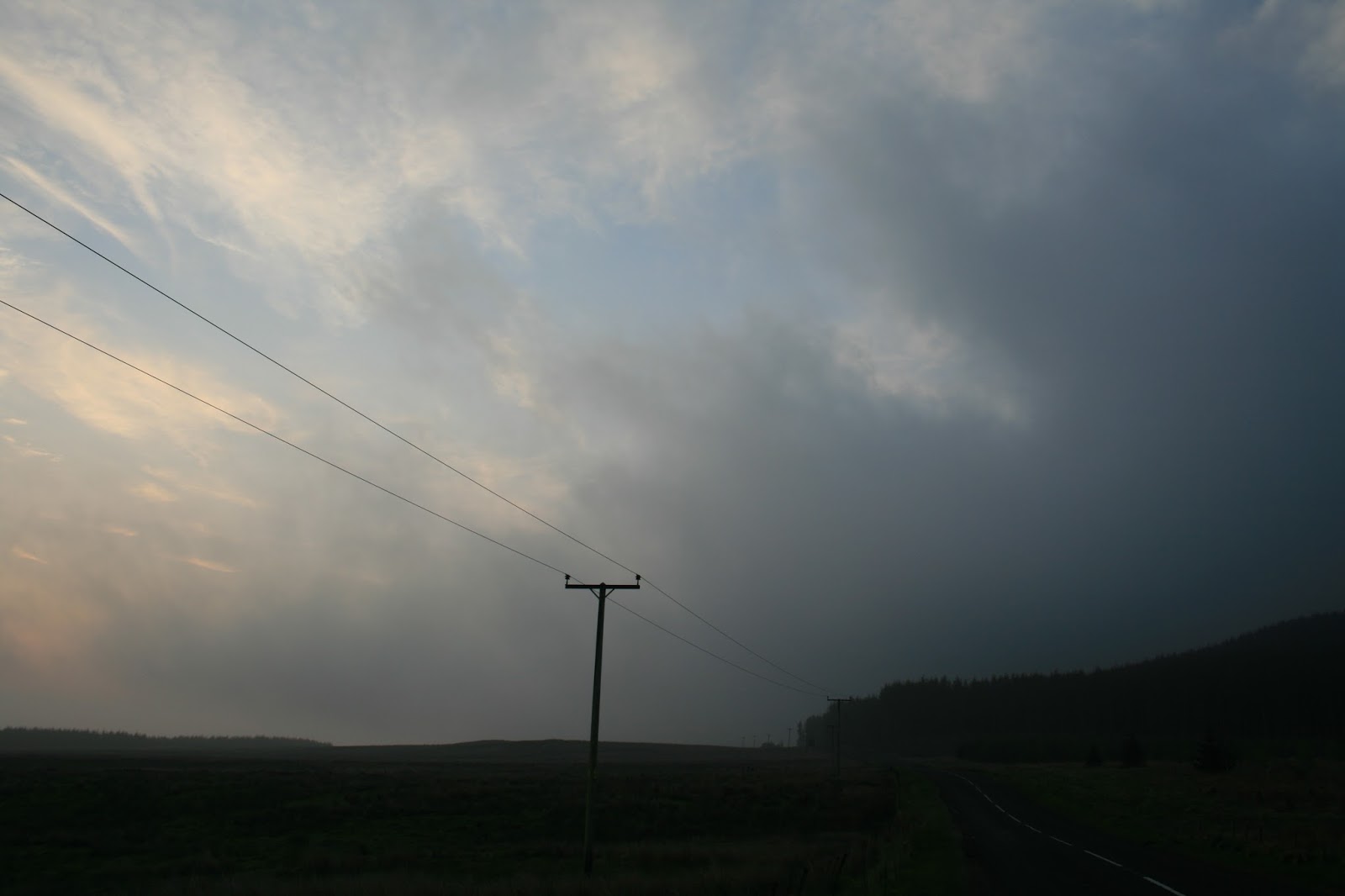 The idea for my final photographs is to show the rural and urban landscape of the Borders. I chose this because the brief was My World, My View. So I wanted to capture the bleak landscape that hasn't changed since the time of the Border Reivers ,contrasting with the modern day intrusion of roads, farming, communication, and power systems. I wanted to try and show the Borders as almost a silhouette by taking the photos at dawn and dusk, I did this to keep the theme of change, transition between day and night, past and present, rural and urban. I took the photos as long landscapes and tried to maintain equal proportions of sky to land. I also enhanced the colour of the skies by adding more pinks and purple tones to the image. To complete my photographs I printed them on A3 acetate. This gives the photographs a feel of transition and allows the viewer to look through the landscape. Apart from changing the colour tones of the pictures, I also edited them by changing the brightness, exposure, sharpness, contrast, and removed distracting elements like phone lines with photoshop.